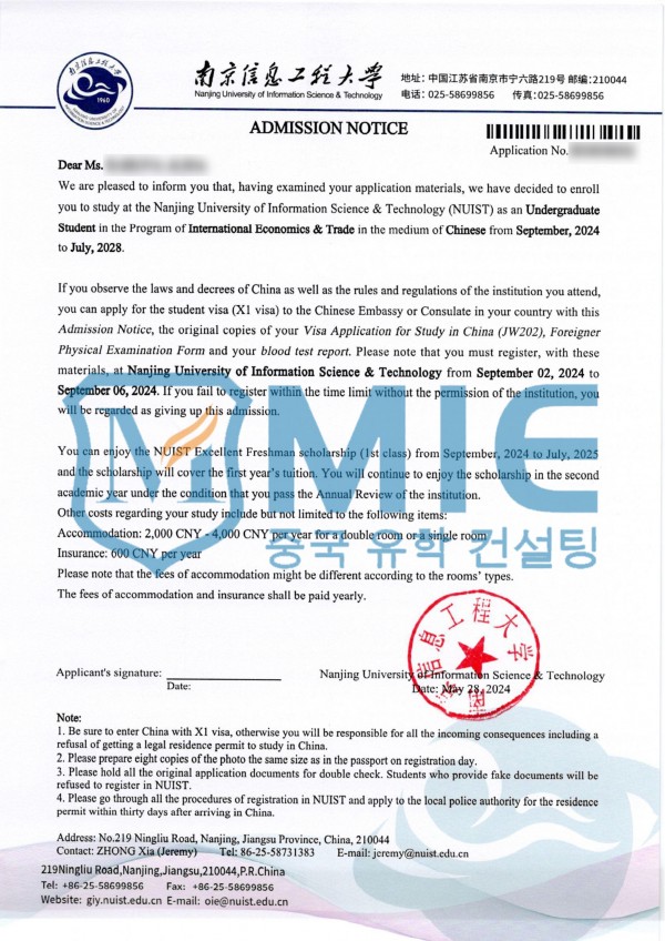 남경정보기술대학교 > 합격 통지서