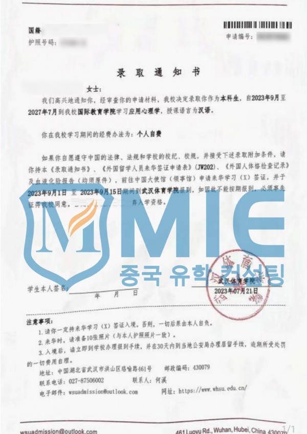 Home > MIE 갤러리 > 합격 통지서 > 우한