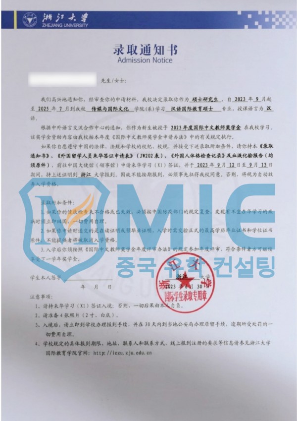 Home > MIE 갤러리 > 합격 통지서 > 절강