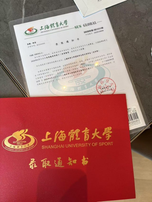 합격된 학교 (동지대,화동사범대, 상해체육대학)중에 결정하는데 많은도움이 되었습니다. 상해체육대학에서 장학금도 받게되어 기쁨니다.
